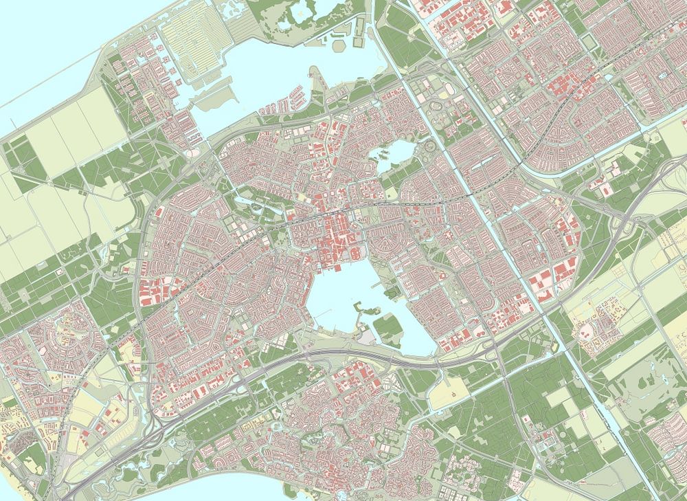- Almere kreeg een “groene en gespreide” structuur: verschillende stadsdelen gescheiden door groengebieden.